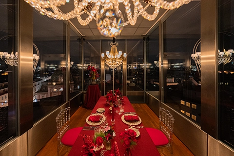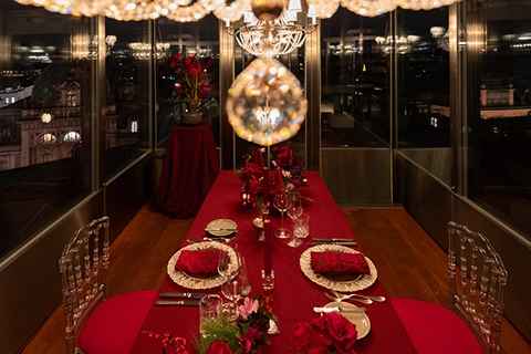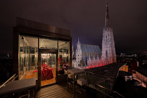 Ein Heiratsantrag im 57. Stock der Altia Bar im Meliá Vienna Hotel, gefolgt von einer Fiakerfahrt und einem intimen Dinner für zwei auf der Dachterrasse des DO & CO Vienna – mit direktem Blick auf den Stephansdom.