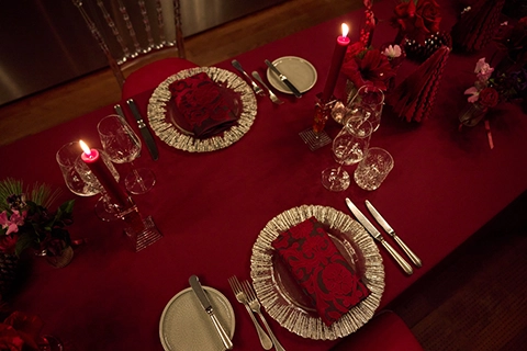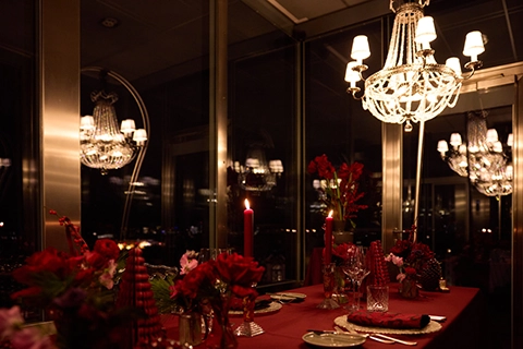 Unter zwei strahlenden Kristalllustern entfaltete sich das Dinner bei Kerzenschein in einer Atmosphäre von erlesener Eleganz und stiller Luxusklasse, in der jedes Detail Exklusivität, Romantik und zurückhaltende Raffinesse widerspiegelte.