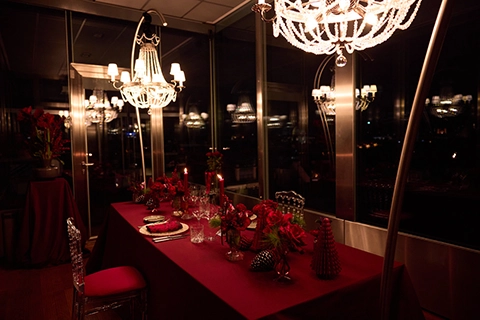 Exklusiv und privat im 57. Stock der Altea Skybar, der höchsten Ebene des tallest buildings Österreichs, wurde die gesamte Location ausschließlich für den Heiratsantrag reserviert. Hoch über den Dächern Wiens, umgeben von einem atemberaubenden Panoramablick und vollkommener Privatsphäre, erlebte das Paar eine Atmosphäre purer Intimität – als wäre die Zeit stehen geblieben und die Stadt unter ihnen in den Hintergrund gerückt. In festlicher Weihnachtsstimmung, mit einem wunderschön geschmückten Christbaum und einem von Kerzen erleuchteten Antragsplatz, war der perfekte Rahmen für den emotionalen „Willst du mich heiraten?“-Moment geschaffen – ganz für sich, entrückt über der Stadt und der Welt um sie herum.