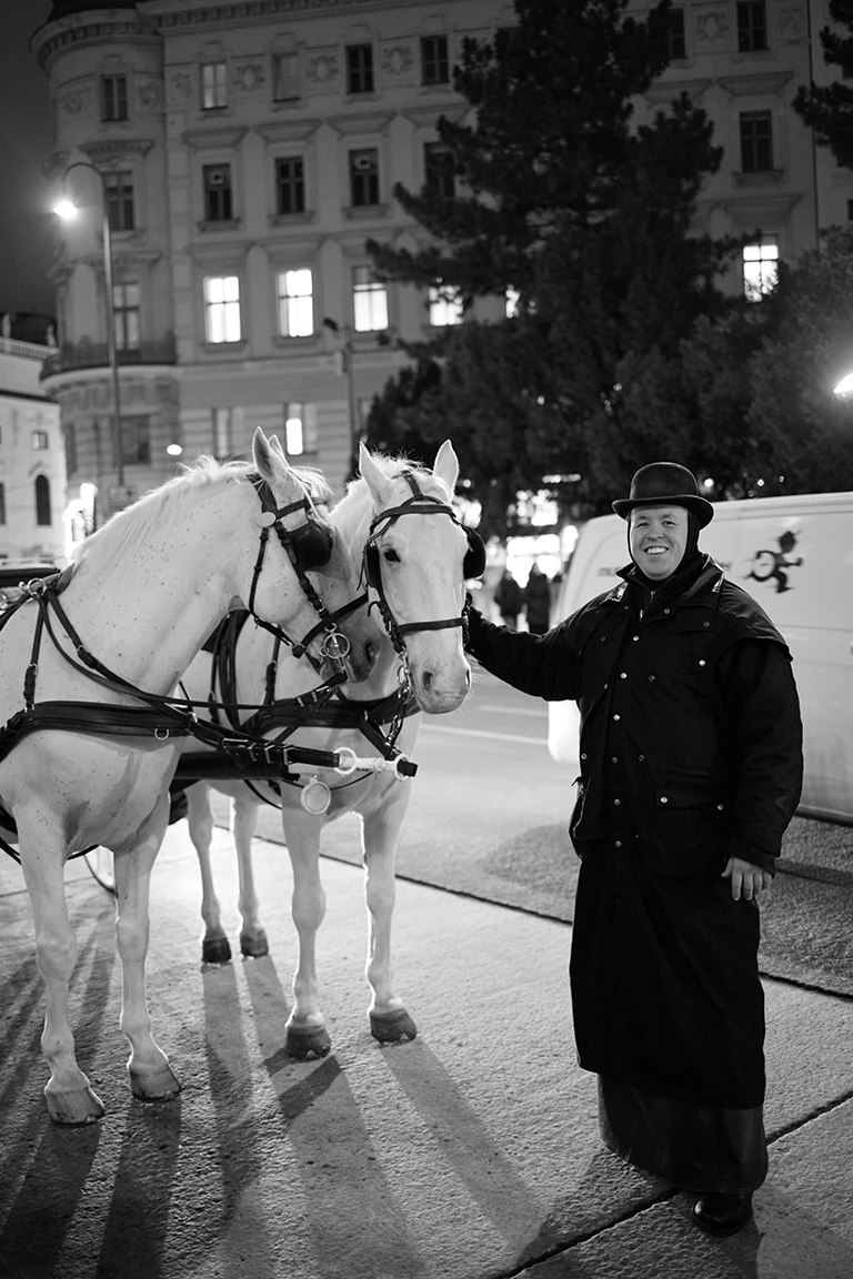 Nach dem Heiratsantrag folgte eine romantische Fiakerfahrt durch das historische Herz Wiens. In weiche Decken gehüllt und umgeben von warmem Kerzenlicht glitt das Paar durch die Stadt, während Wien seine schönste winterliche Seite zeigte – leuchtende Weihnachtslichter, festlich geschmückte Straßen und eine zeitlose, von Romantik erfüllte Atmosphäre.